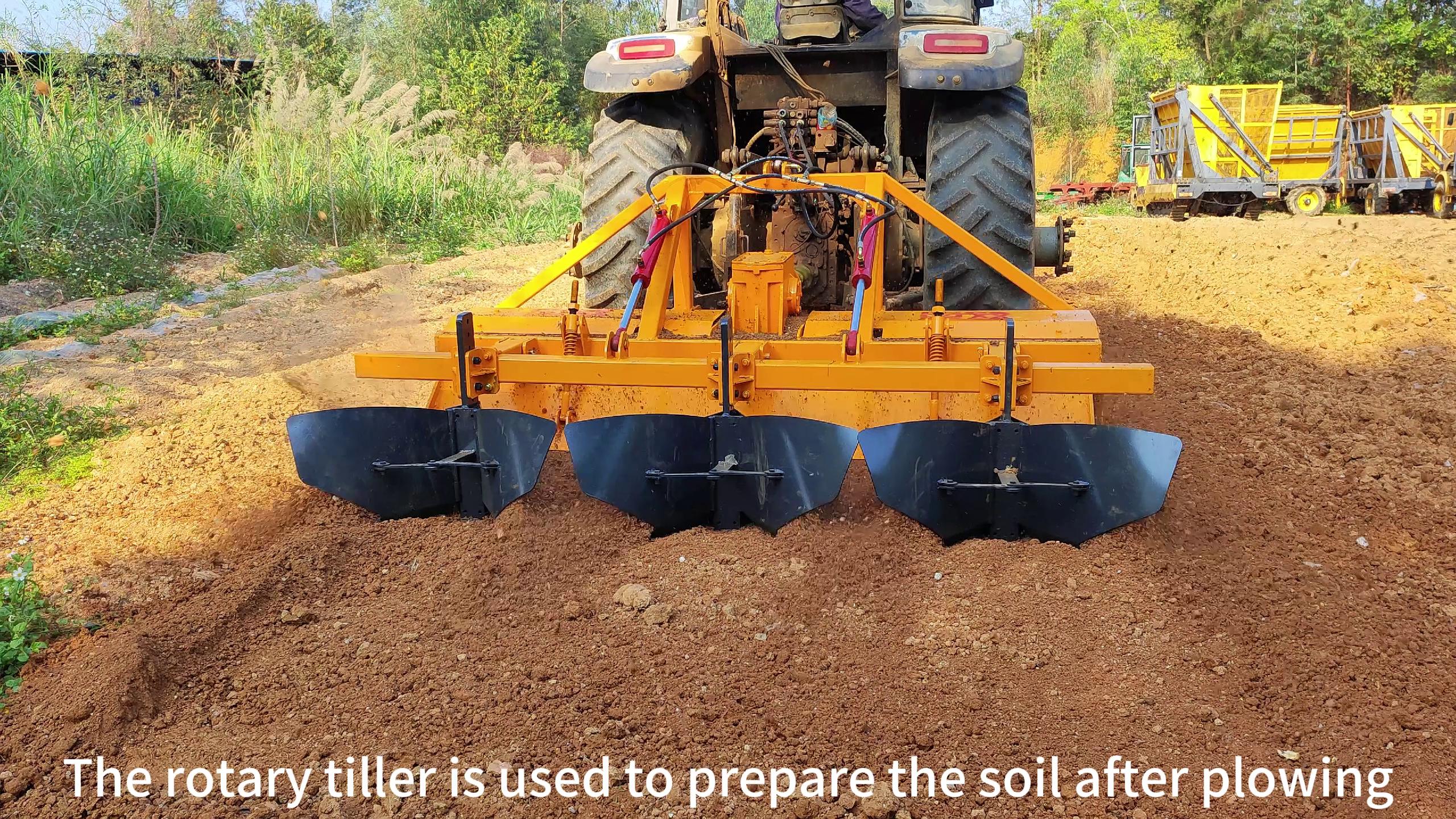 The rotary tiller is used to prepare the soil after plowing. It breaks up the mud clods and also cuts up the straw and crop stubble buried under the surface of the ground, which facilitates the operation of the planter and provides a good seedbed for later planting. It can also be equipped with three row-opening plows at the rear to create two ridge beds simultaneously.