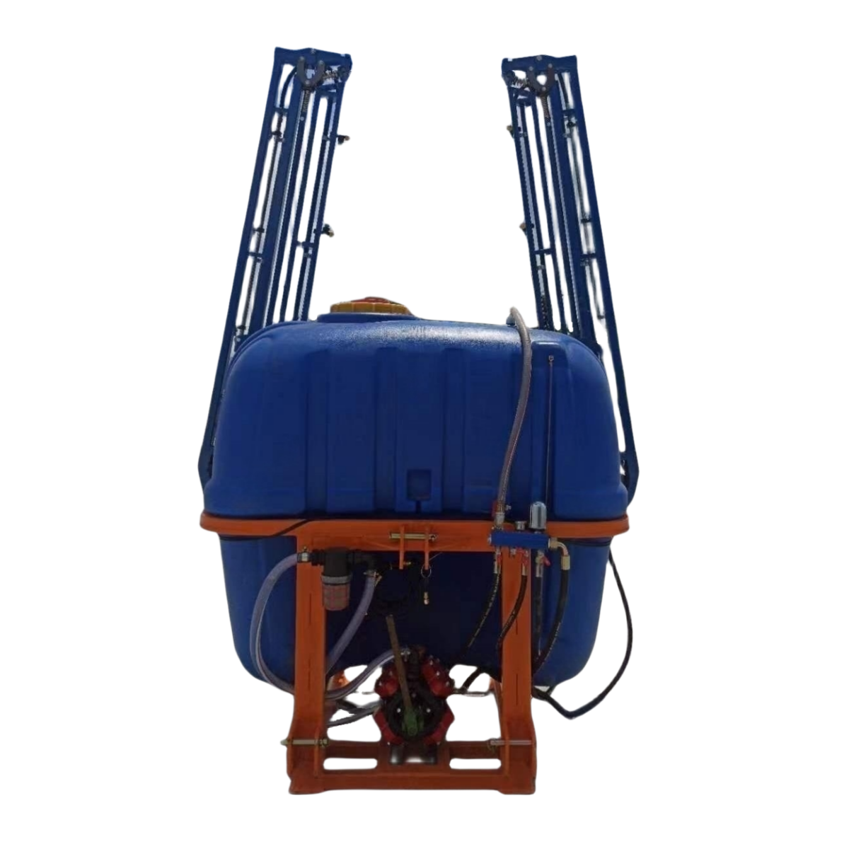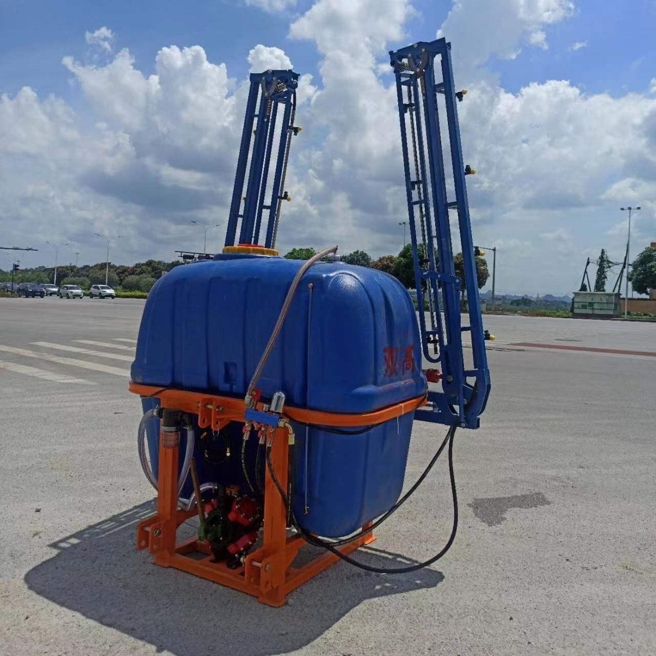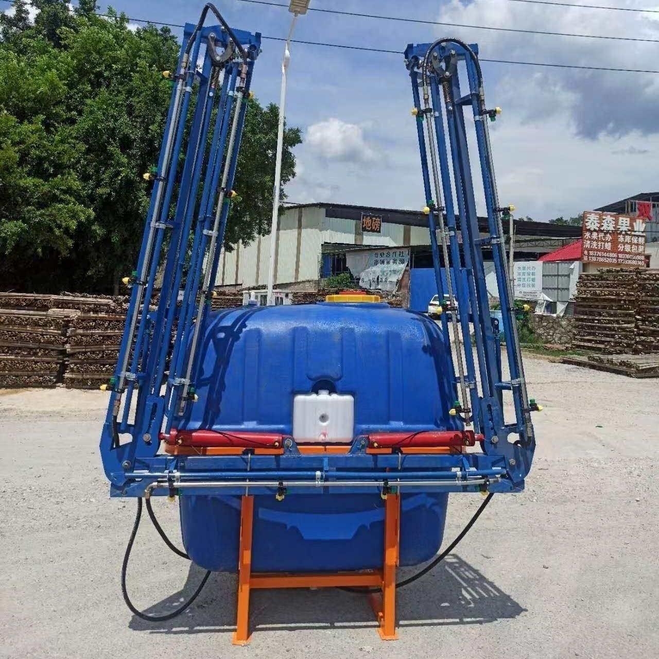 This is a heavy duty agricultural sprayer with tank capacity of 800/1000/ 1500 liters and spraying width of 10-12 meters.It is mounted on tractor and suitable for spraying crop pest, foliar nutrient solution and herbicide. The liquid pump adopts large four-cylinder diaphragm pump, with stable working pressure and uniform spraying. Hydraulic folding spray bar, convenient for tractor driver to operate. The material is thick, stable and durable.